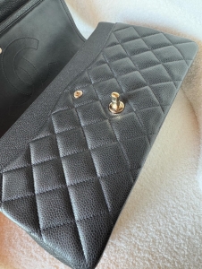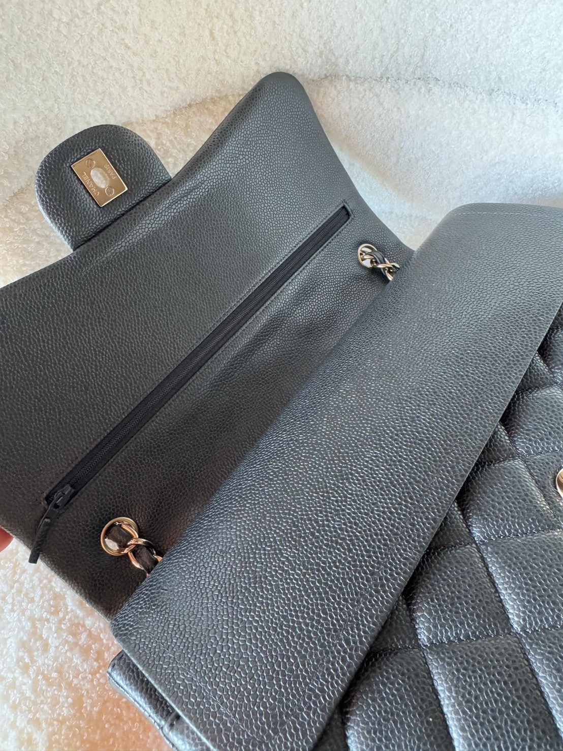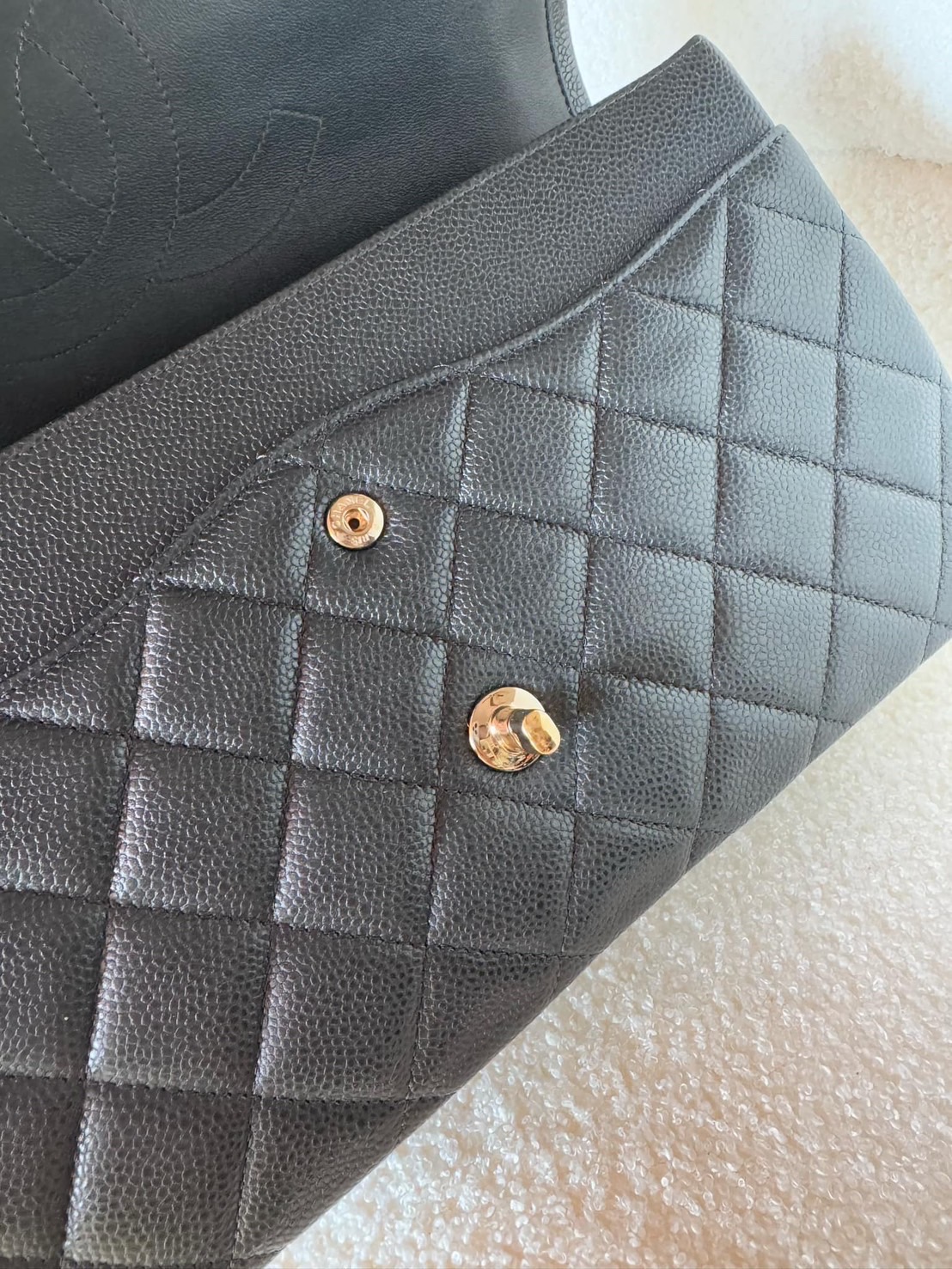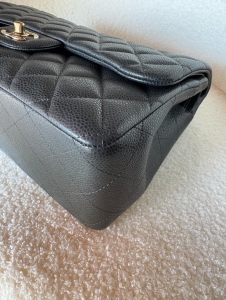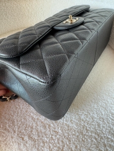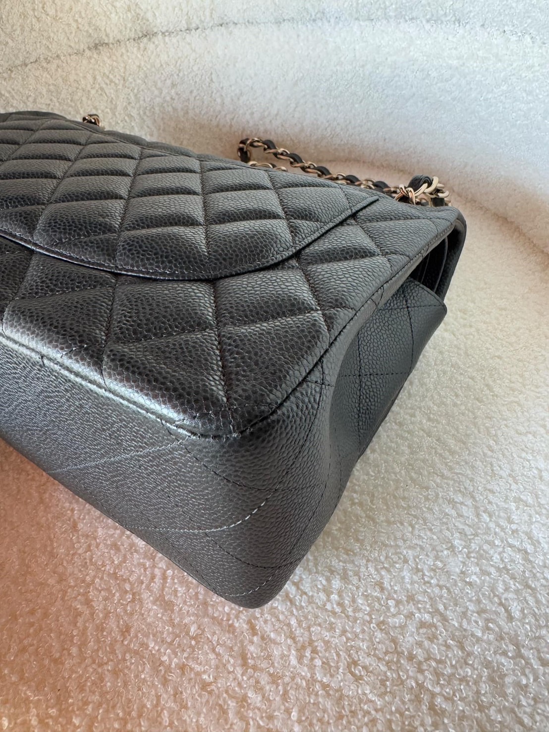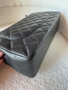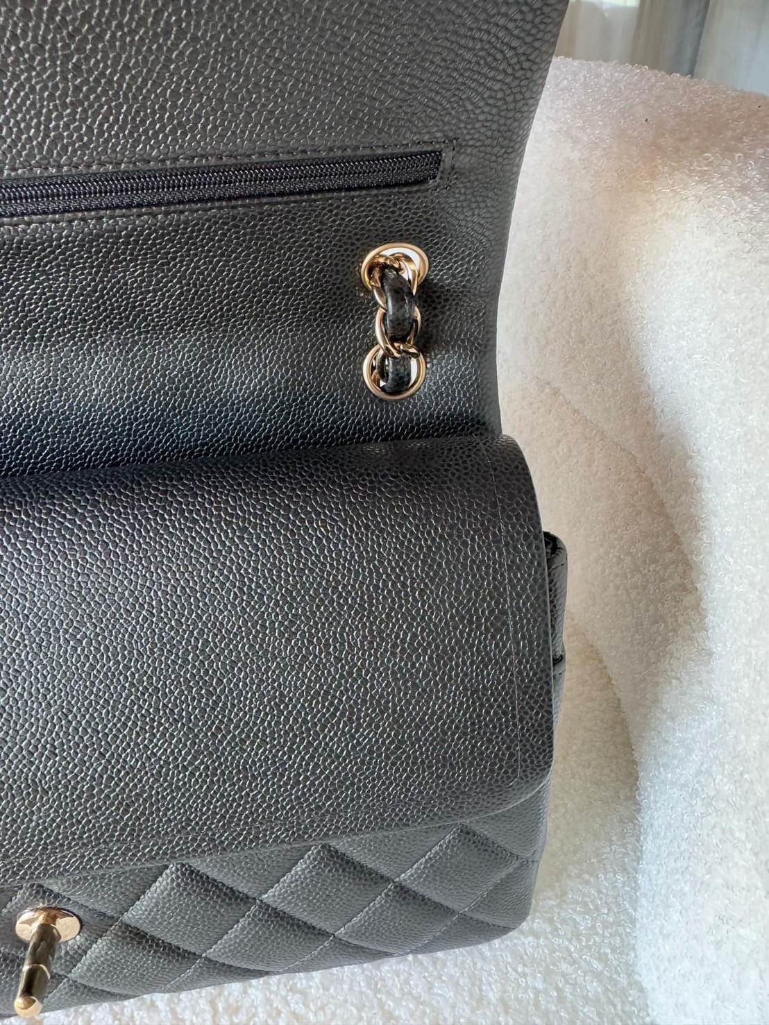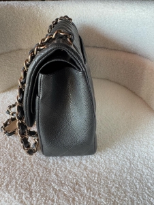 Elevate your style with the Chanel 18S Dark Grey Jumbo Double Flap Caviar Gold Hardware, a quintessential piece for the modern luxury enthusiast. This rare color, part of the sought-after 18S collection, features a stunning dark grey hue that effortlessly complements any outfit. Crafted from premium caviar leather, known for its durability and luxurious feel, this iconic bag showcases a double flap design that provides ample storage while maintaining a sleek silhouette, perfect for both day and night. Adorned with exquisite gold-tone hardware, including the signature CC turn-lock closure, this bag exudes sophistication and timeless elegance. The chain-link shoulder strap, interwoven with leather, offers versatility for different carrying styles, allowing you to wear it on your shoulder or as a crossbody. This preowned piece is in excellent condition and comes with its original dustbag and box, making it a sustainable choice without compromising style. With a shipping time of just one week, you can enjoy this stunning piece in no time. Own a part of fashion history and indulge in the luxurious essence of Chanel with this remarkable bag!
