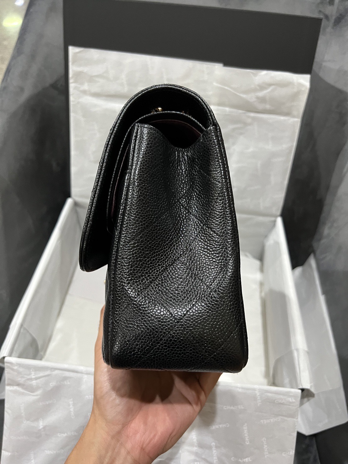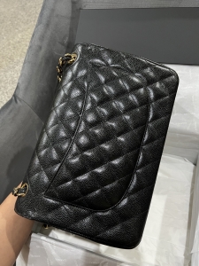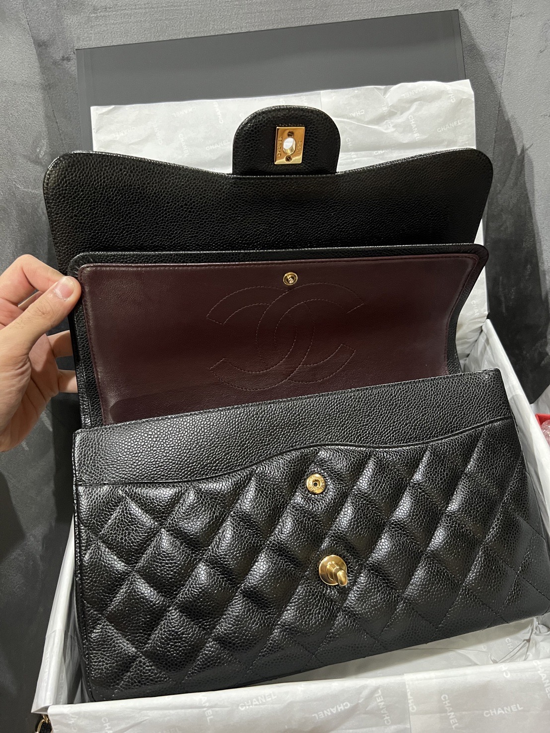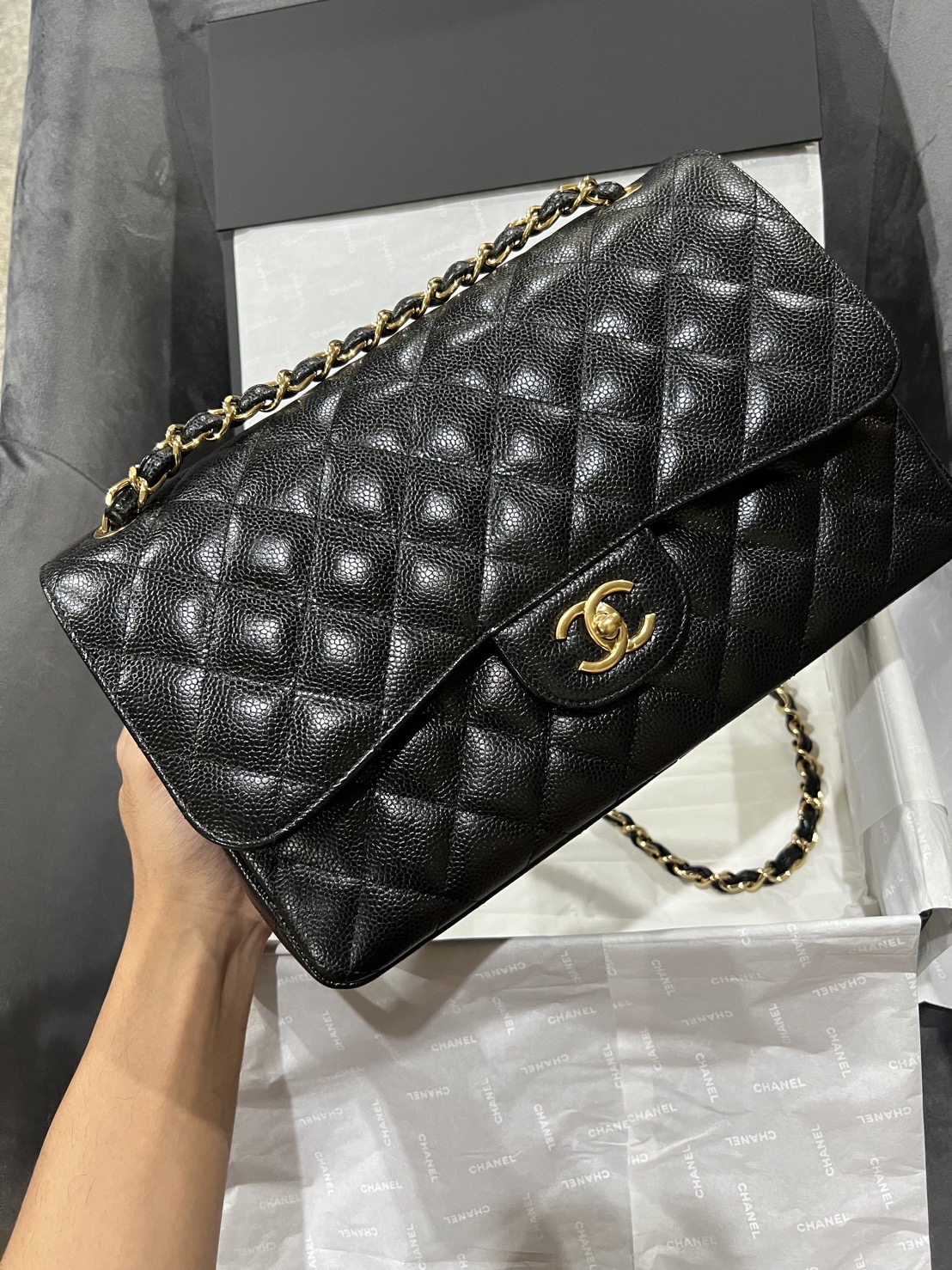 Embody timeless luxury with the Chanel Jumbo Double Flap Bag in Black Caviar, a quintessential icon from the 2023 collection. Crafted from Chanel’s renowned scratch-resistant caviar leather, this preowned masterpiece features gleaming gold hardware, including the iconic CC turn-lock and interwoven chain strap, blending durability with opulence. Fresh from its release year, this bag is microchipped for seamless authentication, reflecting Chanel’s modern security innovations. In excellent condition, the bag showcases minimal signs of wear, meticulously maintained to preserve its structured silhouette and buttery leather texture. The double-flap design offers refined functionality with a front flap, zippered compartment, and multiple interior pockets for organized elegance. Comes as a full set, including the original dust bag, box, authenticity card, and receipt, ensuring unmatched provenance and collector-ready value. A symbol of sophistication, the jumbo size balances practicality and prestige, perfect for everyday glamour or evening allure. The timeless black hue pairs effortlessly with any wardrobe, while gold accents elevate its classic appeal. At Luxcross.com, every preowned piece undergoes rigorous authentication. Invest in this Chanel treasure—a forever statement of heritage and modern luxury.