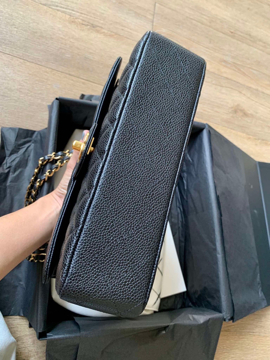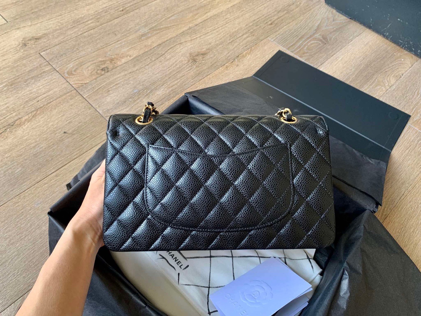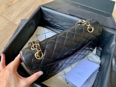A quintessential icon of luxury, this preowned Chanel Medium Double Flap Bag in classic black caviar leather epitomizes timeless elegance. Crafted with Chanel’s unparalleled craftsmanship, the bag features gleaming gold hardware (GHW), including the iconic interlocking CC turn-lock and interwoven chain strap, blending sophistication with versatility. The durable caviar leather ensures lasting beauty, while the medium size (10? x 6? x 2.5?) offers practical elegance for day-to-evening wear. Rated 9.8/10 in pristine condition, this meticulously maintained piece shows nearly no signs of use, reflecting its careful ownership. Microchipped in 2020 for seamless authentication, it arrives as a full set with the original Chanel dustbag, authenticity card, box, and receipt—guaranteeing provenance and peace of mind. A cornerstone of any luxury collection, the Double Flap’s structured silhouette and timeless design promise enduring value. Whether styled casually or formally, this Chanel masterpiece elevates every ensemble with its Parisian allure.