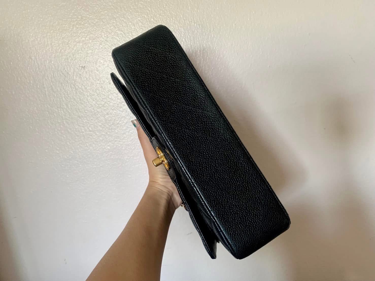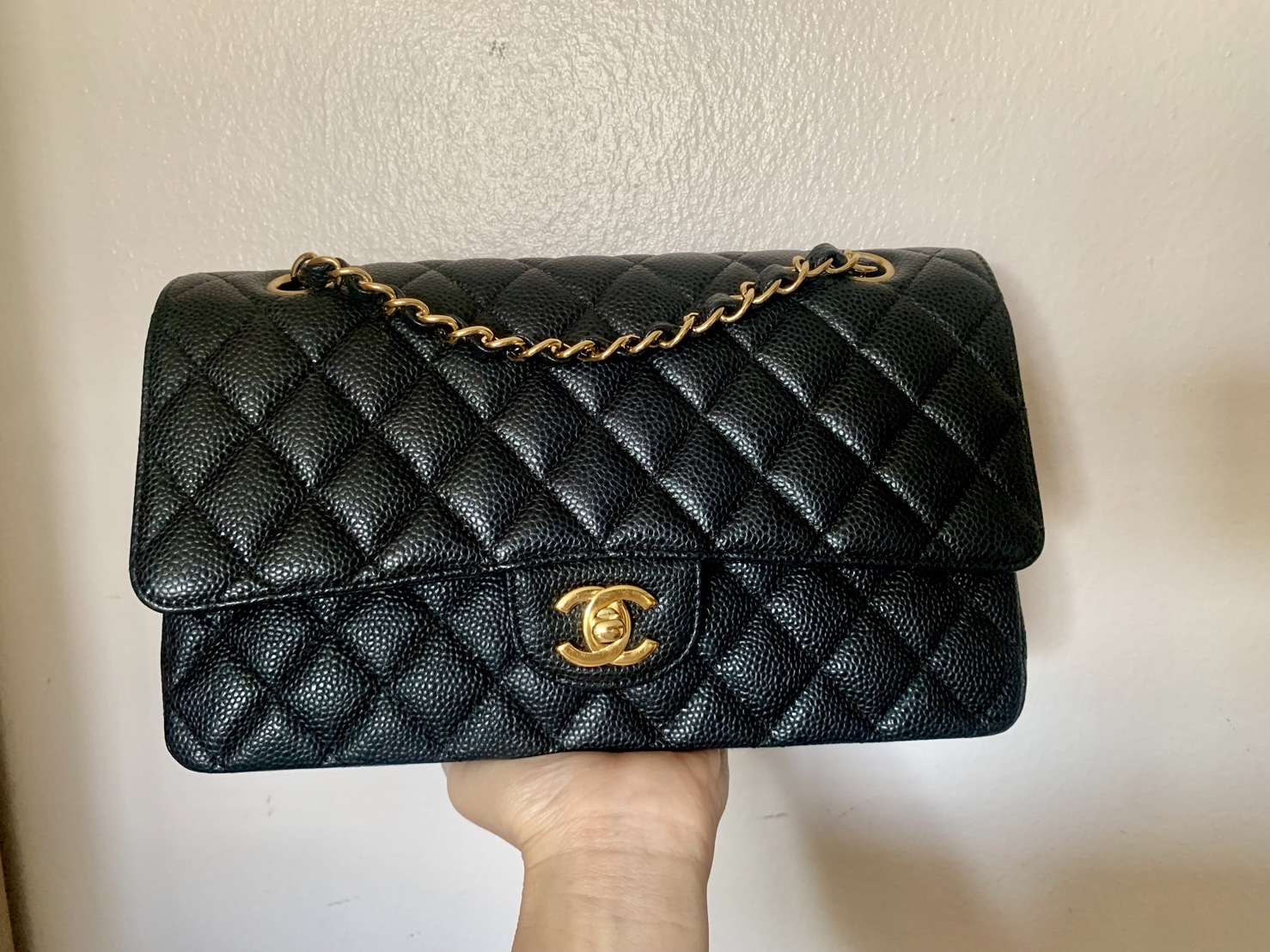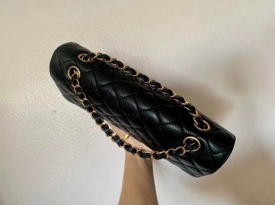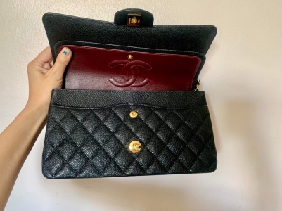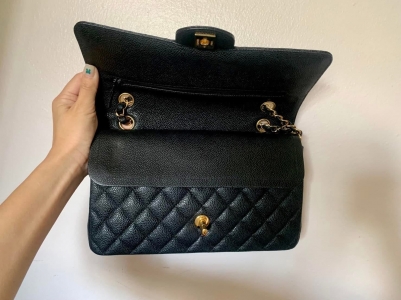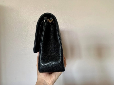 Elevate your style with this preowned Chanel Medium Double Flap Black Caviar in Gold Hardware bag, a timeless piece from the prestigious 24 series released in 2017. Crafted from luxurious black caviar leather, known for its durability and refined texture, this bag combines classic elegance with everyday functionality. The iconic double-flap design features gold hardware that adds a touch of opulence, while the quilted stitching and CC turn-lock closure highlight Chanel's signature craftsmanship. Inside, you'll find a spacious interior with a zipped pocket for secure storage, ensuring your essentials are always organized. In excellent condition (rated 9.5/10), it shows minimal signs of wear and comes complete with its original dustbag, card, and box, guaranteeing authenticity and preserving its pristine state. A versatile and chic accessory, this medium-sized bag is perfect for those seeking to add a touch of luxury to their collection.