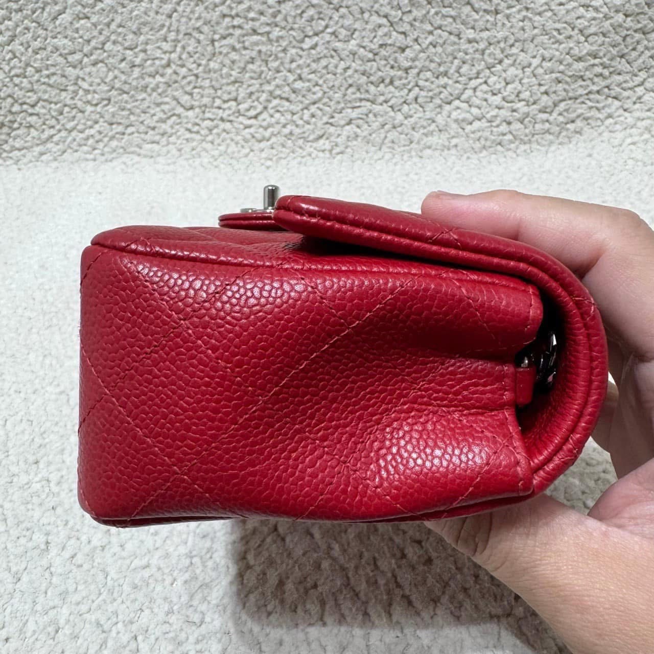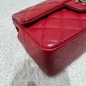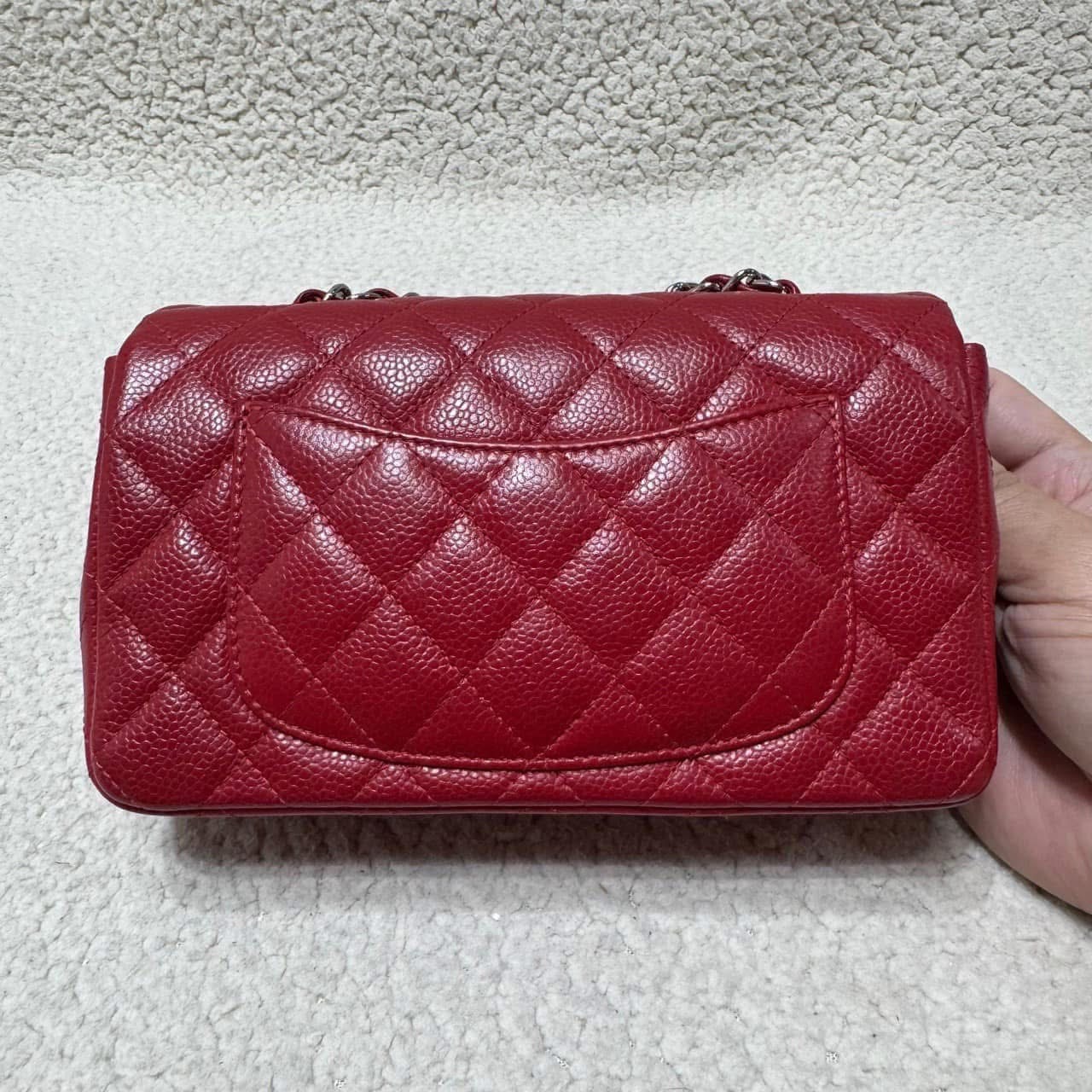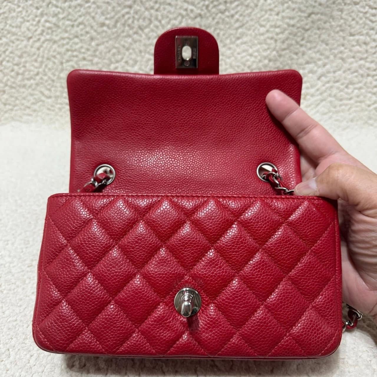 Introducing the Preowned Chanel Red Mini Rectangle Caviar Silver Hardware, a striking piece that embodies bold elegance and timeless style. This bag features a beautiful true red color that is not only eye-catching but also versatile enough to elevate any outfit, whether for a casual day out or a glamorous evening event. Expertly crafted from luxurious caviar leather, this mini rectangular bag showcases Chanel's renowned craftsmanship and attention to detail. The silver hardware beautifully complements the vibrant red hue, featuring the iconic interlocking CC logo that symbolizes sophistication. The compact design offers ample space for your essentials, with a thoughtfully organized interior that ensures easy access while maintaining a sleek exterior. This piece comes complete with the original dustbag, authenticity card, and box, making it an ideal addition to your luxury collection or a perfect gift for a special occasion.