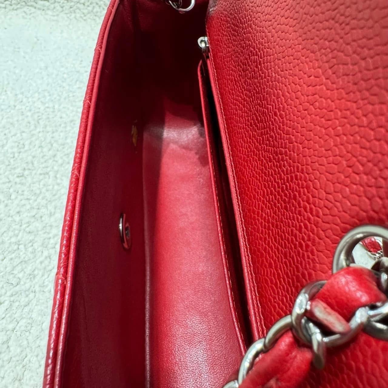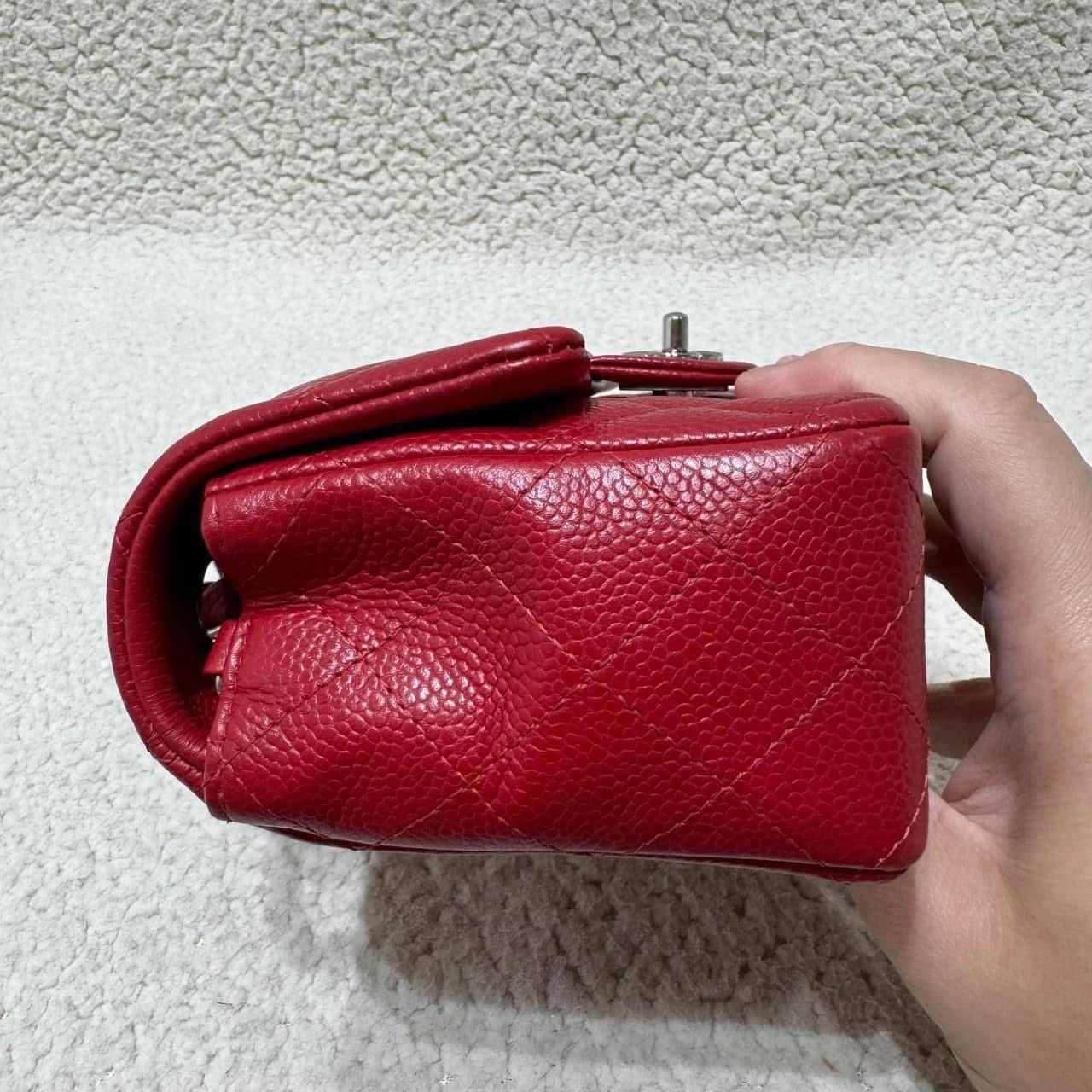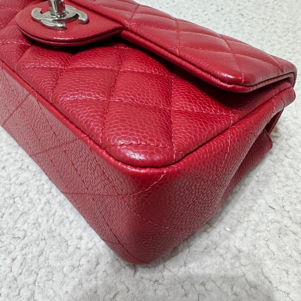 Introducing the Preowned Chanel Red Mini Rectangle Caviar Silver Hardware, a striking piece that embodies bold elegance and timeless style. This bag features a beautiful true red color that is not only eye-catching but also versatile enough to elevate any outfit, whether for a casual day out or a glamorous evening event. Expertly crafted from luxurious caviar leather, this mini rectangular bag showcases Chanel's renowned craftsmanship and attention to detail. The silver hardware beautifully complements the vibrant red hue, featuring the iconic interlocking CC logo that symbolizes sophistication. The compact design offers ample space for your essentials, with a thoughtfully organized interior that ensures easy access while maintaining a sleek exterior. This piece comes complete with the original dustbag, authenticity card, and box, making it an ideal addition to your luxury collection or a perfect gift for a special occasion.